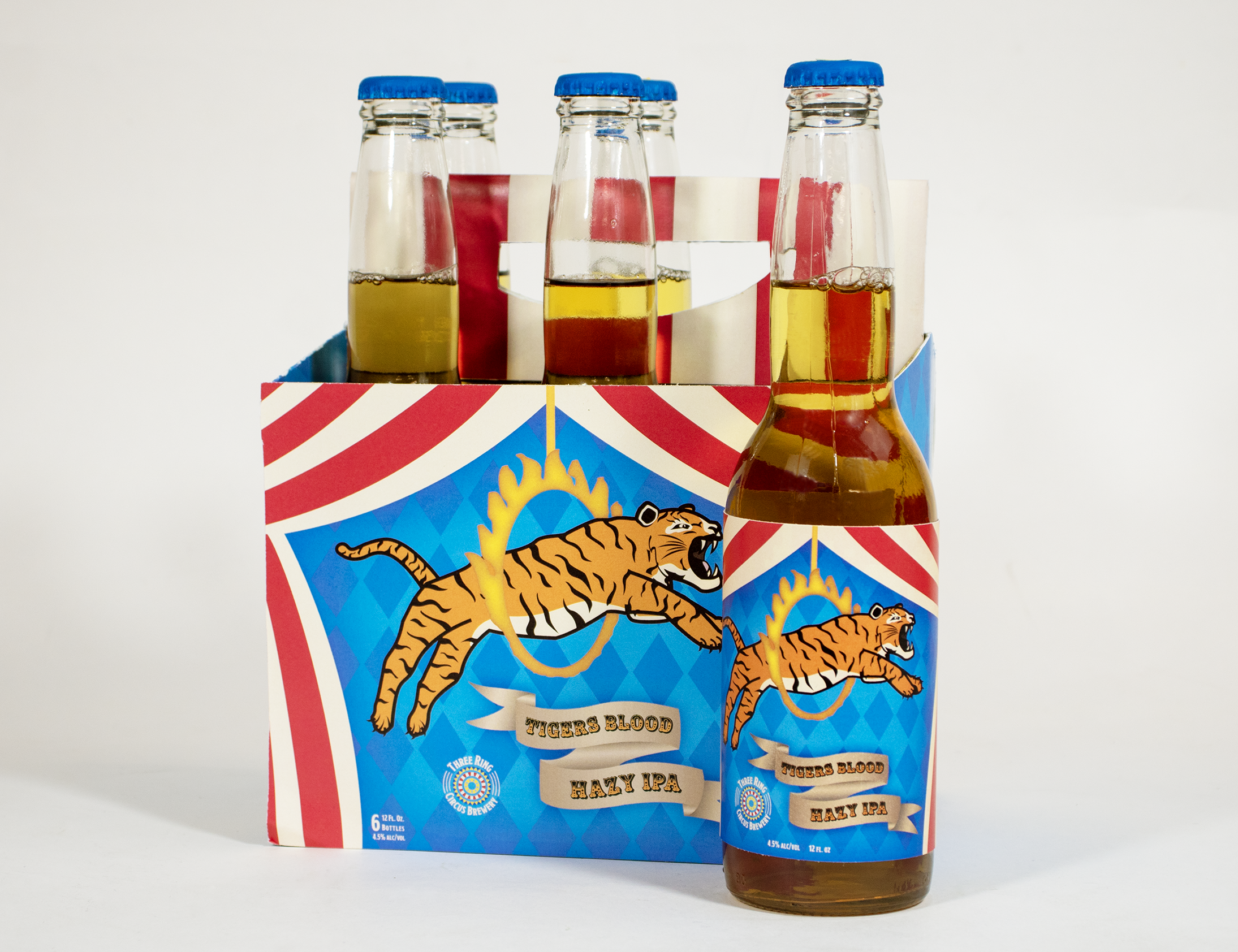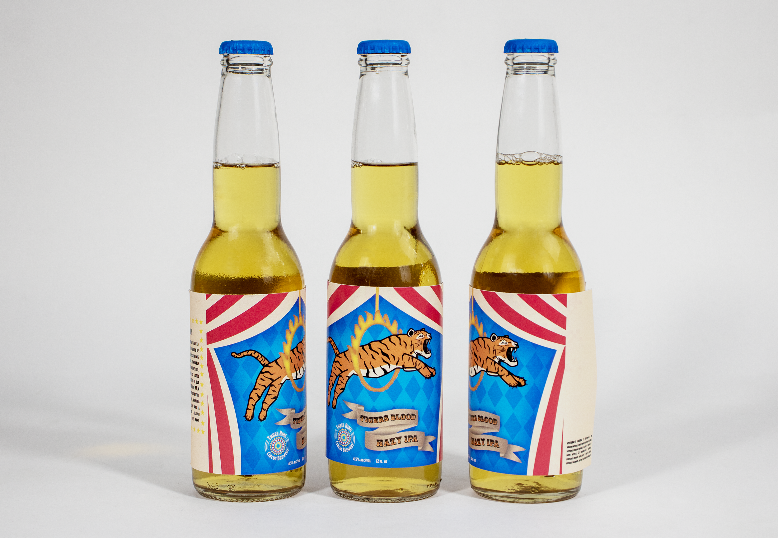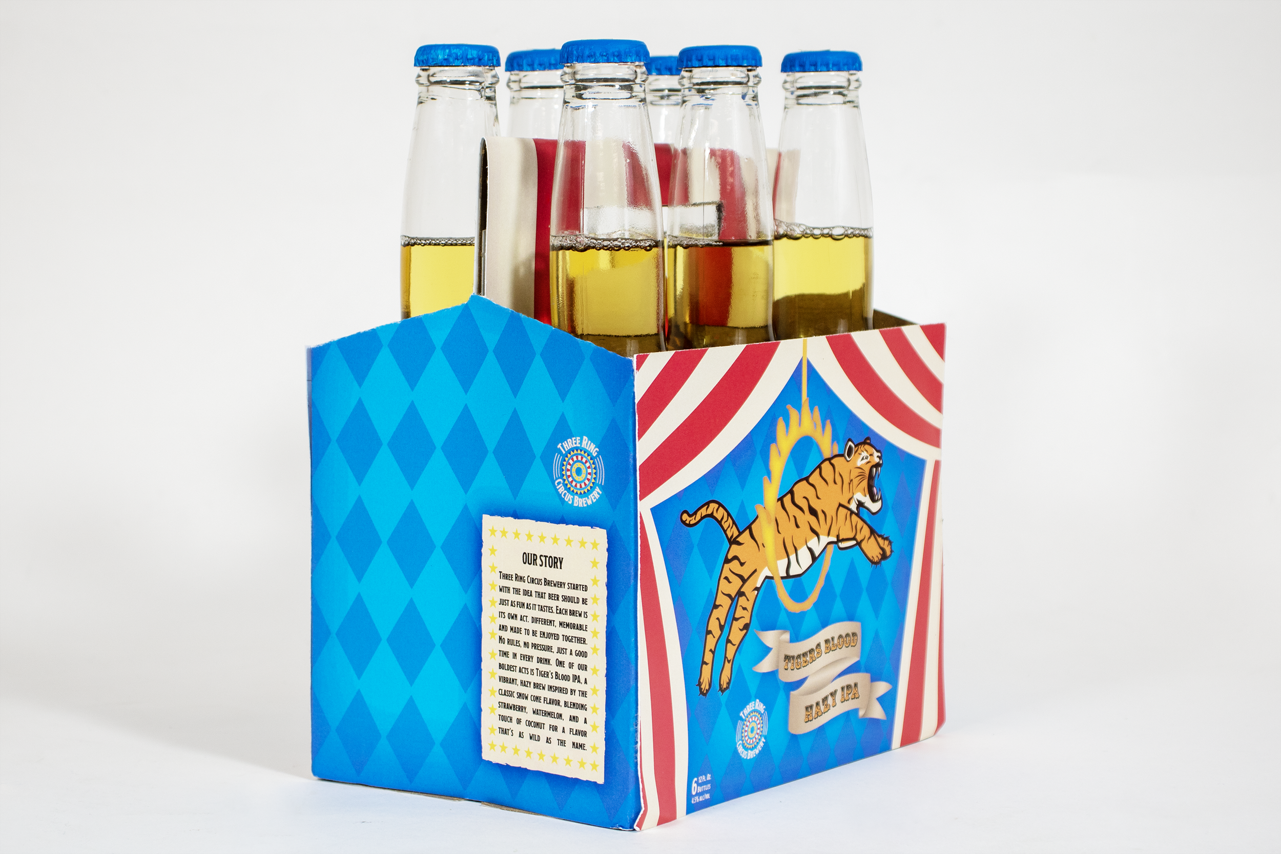 Three Ring Circus Brewery and Tigers Blood IPA is a conceptual design inspired by the idea that beer should look as fun as it tastes. The flavor comes from the classic Tigers Blood snowcone flavor.